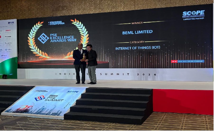 New Delhi: BEML Limited has been honoured with the PSE Excellence Award in the Internet of Things (IoT) category at the PSE Technology & Innovation Awards 2026 held in Hyderabad. The recognition highlights the company’s strong push toward digital transformation and adoption of Industry 4.0 technologies.