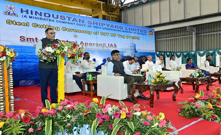 New Delhi: Hindustan Shipyard Limited (HSL) has commenced steel cutting for the second 60 Ton Bollard Pull (BP) tug being built for the Visakhapatnam Port Authority (VPA), marking a significant milestone in the project’s execution. The 32-metre tug is designed for high manoeuvrability and superior escort performance, supporting the government’s Maritime India Vision 2030 and Aatmanirbhar Bharat initiatives.