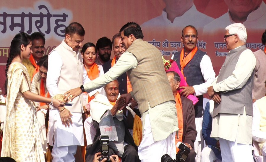 The program also honored Badrinath Prasad Tiwari, the first guru of School Education Minister Uday Pratap Singh. Along with the teachers of the Chief Minister and the Education Minister, three other senior teachers were felicitated.