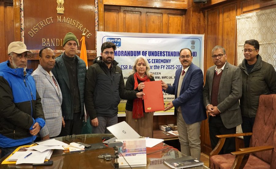 The MoU was formally signed by Mr. Rajesh Ranjan, Head of Project, Kishanganga Power Station, on behalf of NHPC, and Ms. Indu Kanwal Chib, Deputy Commissioner, Bandipora, representing the District Administration.