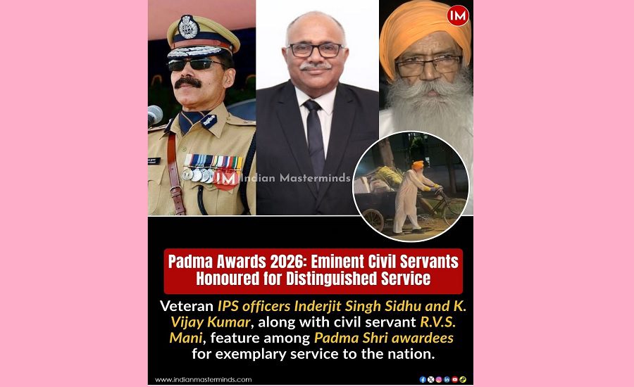 The Padma Awards 2026 honour several eminent civil servants whose lives exemplify service beyond duty, discipline beyond designation, and commitment beyond retirement. Among them are veteran IPS officers K. Vijay Kumar, Inderjit Singh Sidhu, and civil servant R.V.S. Mani – each representing a distinct dimension of nation-building.