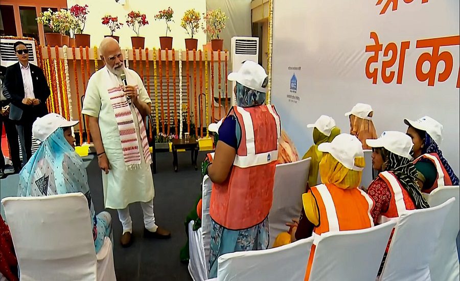 Women employees of NBCC also briefed the Prime Minister about the progress of the GPRA redevelopment project during his visit to the Sarojini Nagar site.