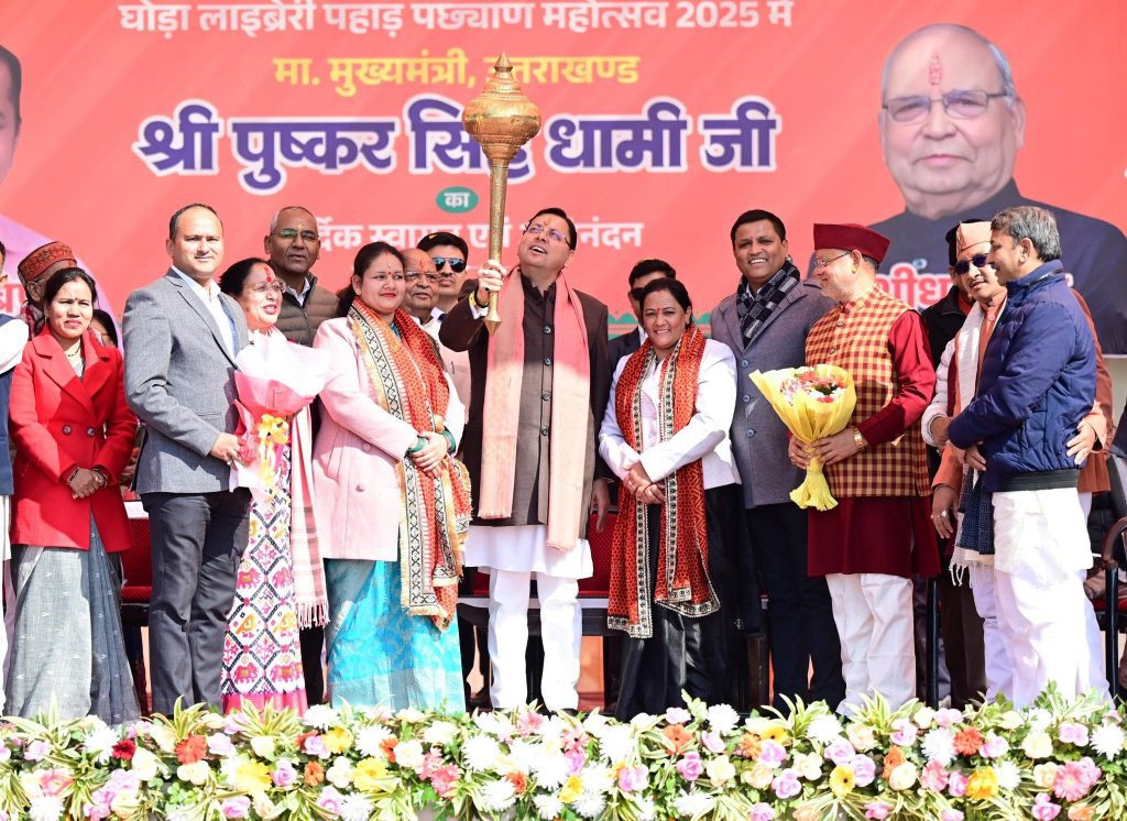 Kotabag: Chief Minister Pushkar Singh Dhami inaugurated the two-day Ghoda Library Pahad Pachhyad Festival at Atal Utkrisht Rainka, Kotabag, in Kaladhungi Assembly constituency. During the event, CM Dhami announced development projects worth ₹114.69 crore for Nainital, Kaladhungi, and Haldwani regions. He praised the Ghoda Library initiative for promoting folk culture, books, and nature, urging children to connect with literature and their cultural heritage.