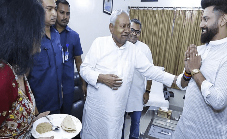Union Minister Mr. Chirag Paswan hosted a vibrant Chhath Puja celebration at his Shri Krishna Puri residence in Patna. Bihar Chief Minister Mr. Nitish Kumar visited the minister’s residence on Sunday to partake in the traditional kharna prasad, the offering consumed by devotees before commencing the rigorous 36-hour fast as part of Chhath Puja.